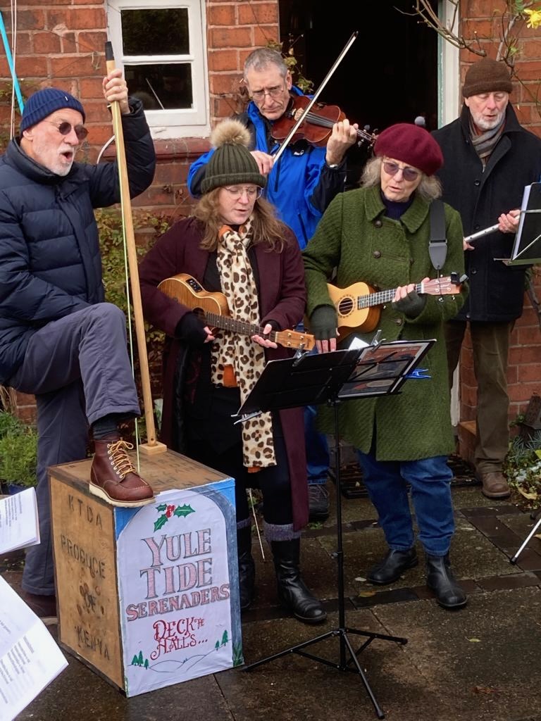 The snow was on the ground, the North Wind did blow, but that didn’t stop a bunch of the finest, most intrepid vocalists (Some had travelled from the sunny South! Who says they’re soft down there?) joining the Yuletide Serenaders for a practice run-through in the back garden: